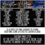 Each Venue to be played down to the final 2 using both boards available both players will go through to the finals night on Tuesday May 27th at The Southwick Sports And Socail Club